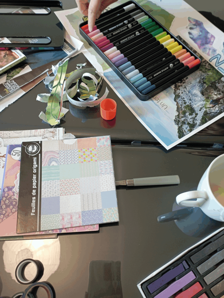 Les ateliers créatifs intuitifs et la médiation artistique offrent un temps pour créer, ralentir et prendre du recul. Ils permettent d’accueillir ce qui est là dans l’instant, de déposer ses ressentis et de s’exprimer librement à travers la création, sans recherche de performance.